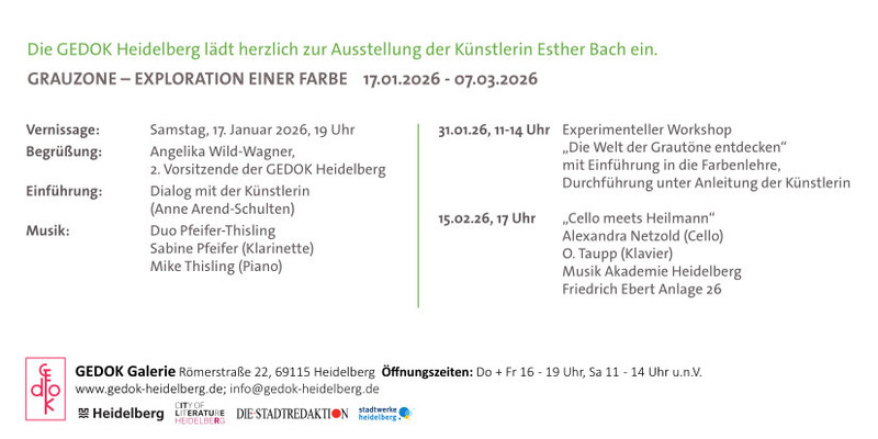 Meine Ausstellung "Grauzone" in der GEDOK-Galerie, Heidelberg kann noch bis 7.3. besucht werden.